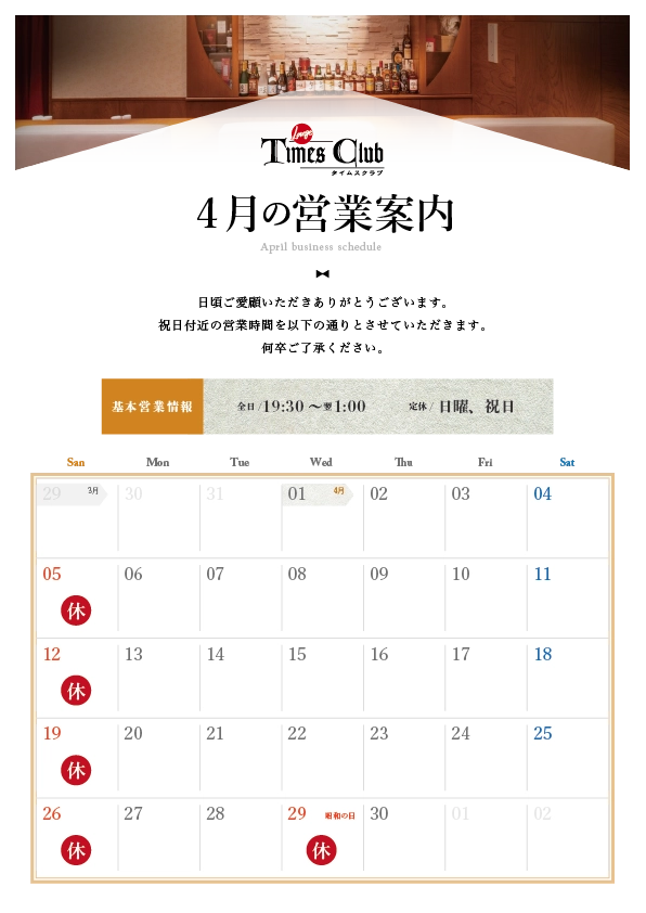 4月5月の営業カレンダーをご用意いたしました。